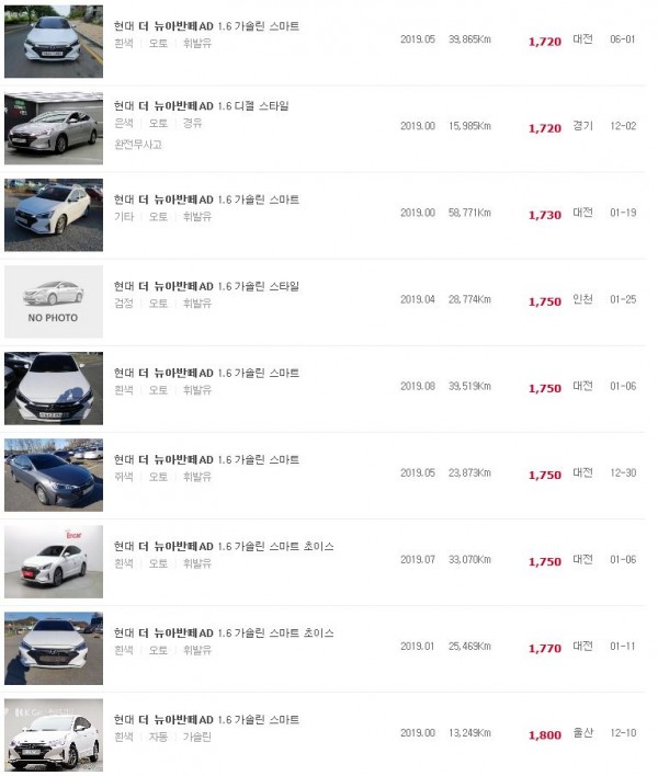 2019년식 아반떼 중고차시세! 페이지 정보 작성자 최고관리자 댓글 0건 조회 14,807회 작성일 22-01-28 16:01 목록 게시판 리스트 옵션 검색 본문 2019년식 아반떼 중고차시세! 중고차매매사이트에서 판매되고 있는 아반떼의 중고차시세입니다. 2019년식이면 이제 3년이 되어 가는 중고차입니다. 아직까지는 신차의 보증도 남아 있는 차량들이 많을 것입니다. 3년 이내의 중고차이면 중고차로 인기 있는 연식 중에 하나입니다. 그럼 현재 실제로 판매되고 있는 중고차시세를 알아보겠습니다. 이전글2021년식 팰리세이드 중고차시세 중고차가격표 22.06.23 다음글2018년식 올뉴 K3 중고차시세! 22.01.19 댓글 0 댓글목록 등록된 댓글이 없습니다.